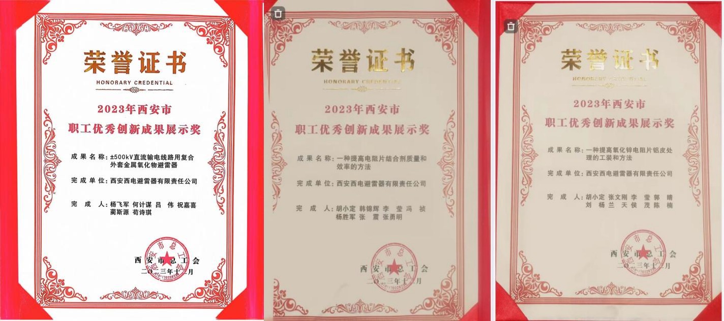 本次参展的三项成果分别为何计谋劳模创新工作室的“±500kV 直流输电线路用复合外套金属氧化物避雷器”和胡小定创新工作室“一种提高电阻片结合剂质量和效率的方法”、“一种提高氧化锌电阻片铝皮处理的工装和方法”。