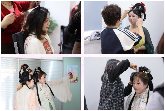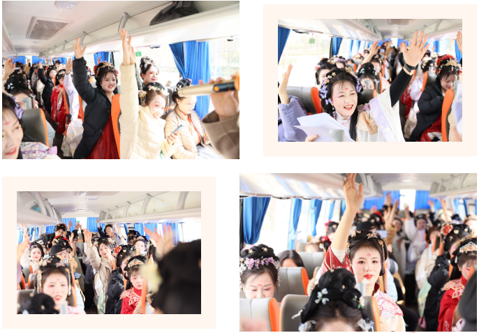 她们换下工装,着汉服、梳妆、簪花,成为三月靓丽的风景线。